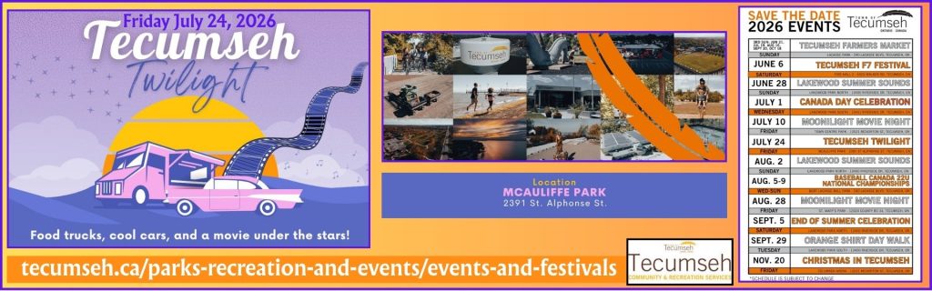 Website at https://www.tecumseh.ca/parks-recreation-and-events/events-and-festivals/